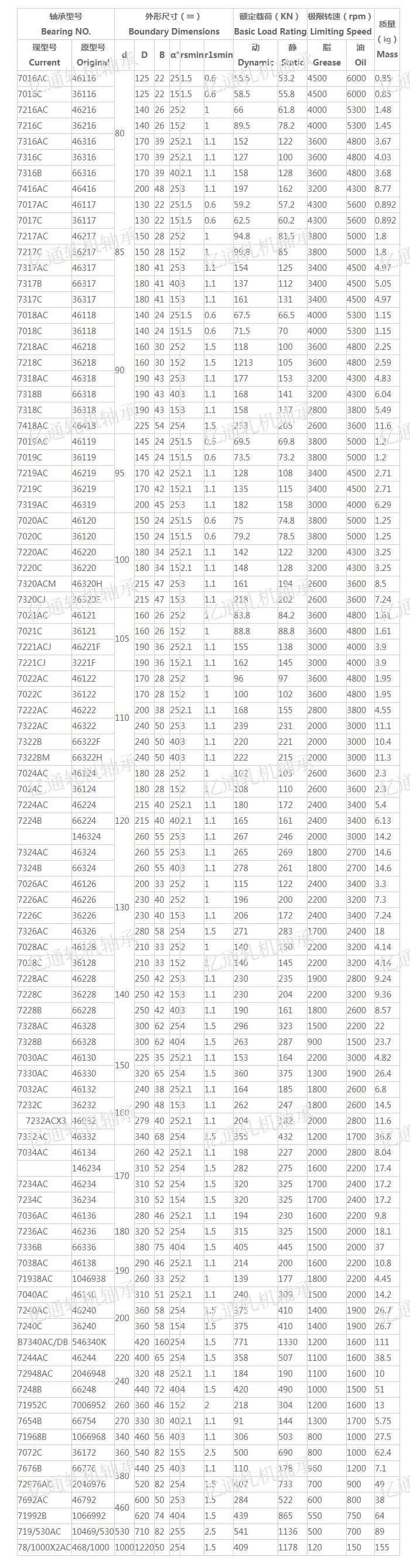 單列角接觸球軸承